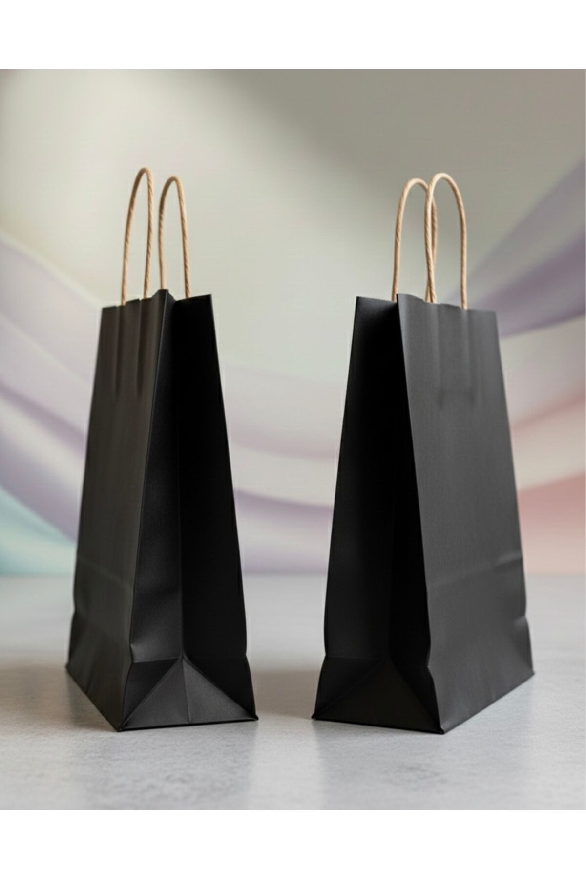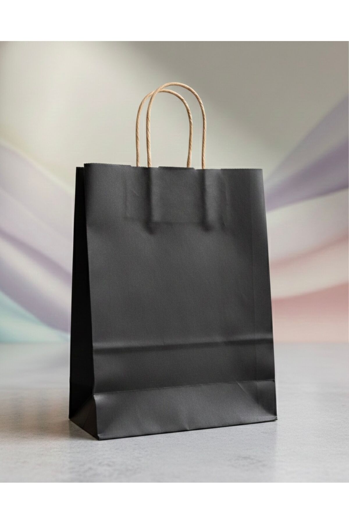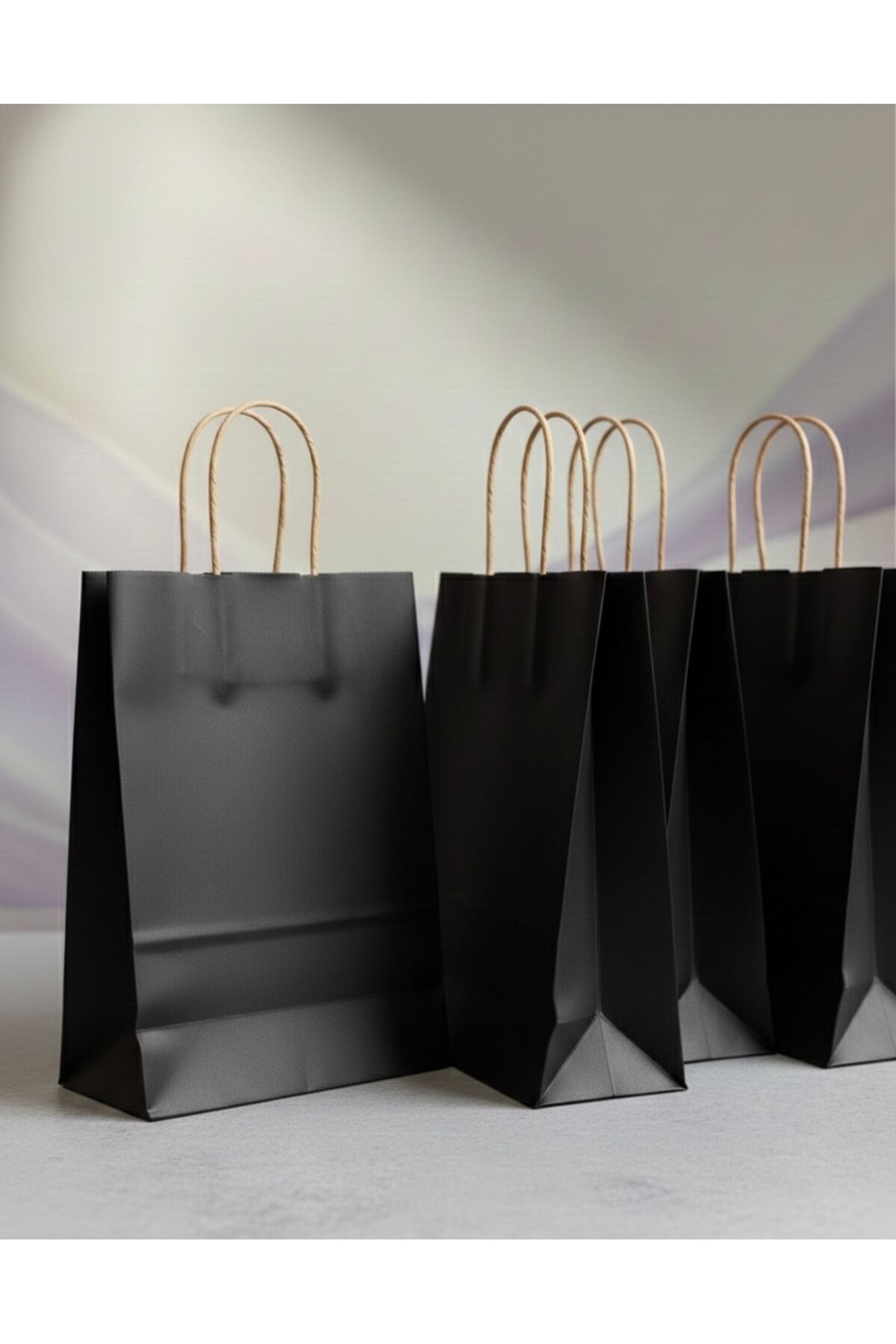 -18x24 cm boyutlarındaki bu kraft kağıt çantalar, hem şık hem de fonksiyonel bir kullanım sunar.; - Siyah renkli tasarımı ile modern ve zarif bir görünüm sağlar, hediye paketlemenizi daha özel kılar.; - 1. Kalite malzeme kullanılarak üretilmiştir, dayanıklılığı ve uzun ömürlü kullanımı garanti eder.; - birden fazla hediye veya eşya taşıma ihtiyacınıza pratik bir çözüm sunar.; - Hediye poşeti olarak tasarlanmıştır; sevdiklerinize anlamlı ve şık bir şekilde hediye vermenize olanak tanır.; - Türkiye menşeli olup, yerel üretimden faydalanarak ekonomik ve kaliteli bir seçenek sunar.
