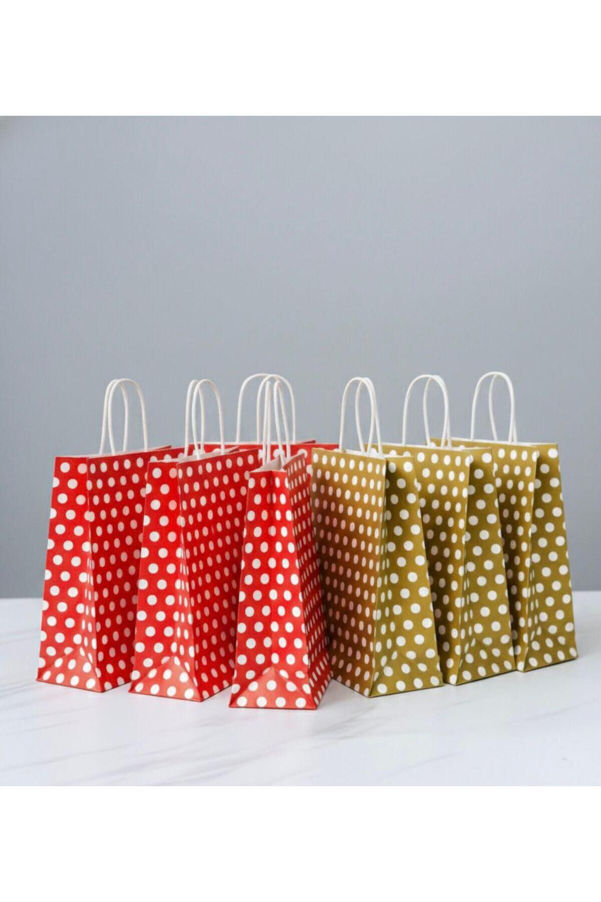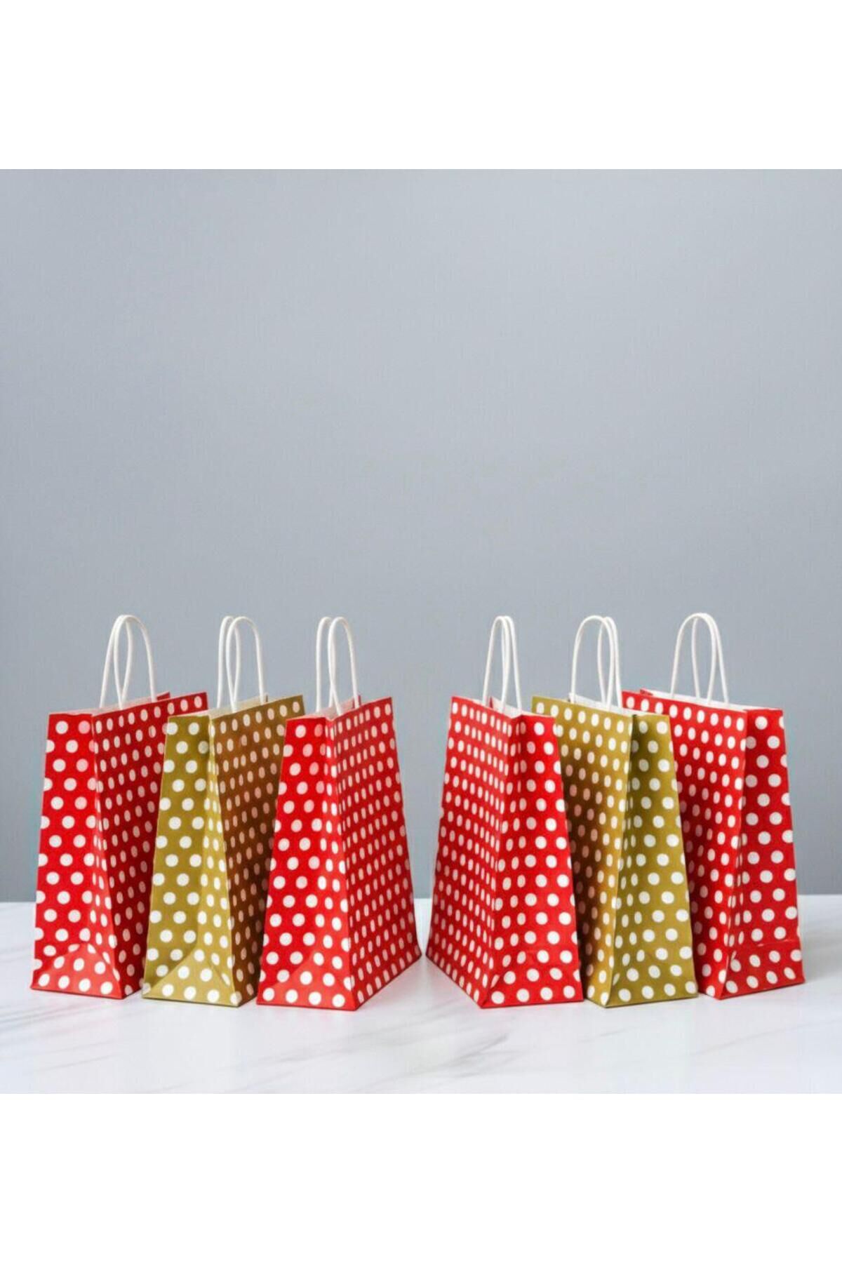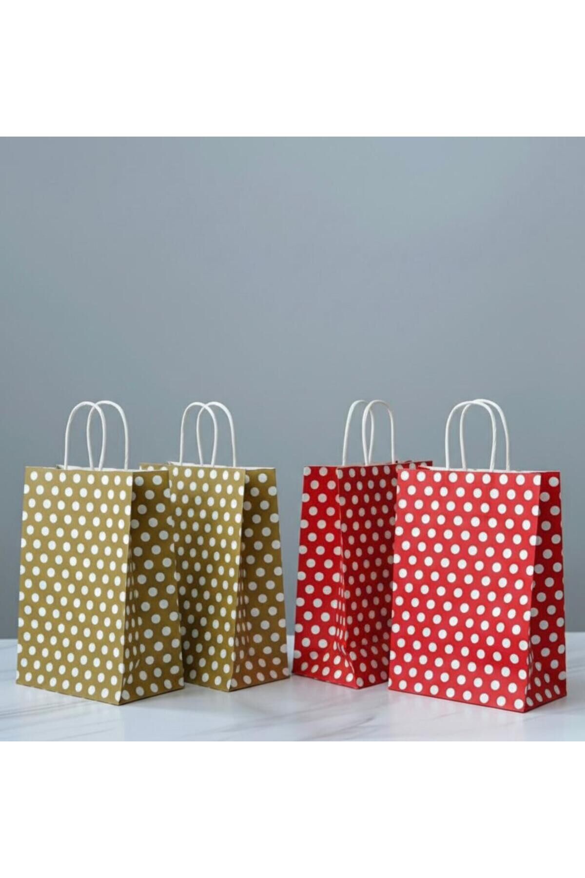 Kırmızı / Gold Renk Beyaz Benekli, Kraft Kağıt Çanta
