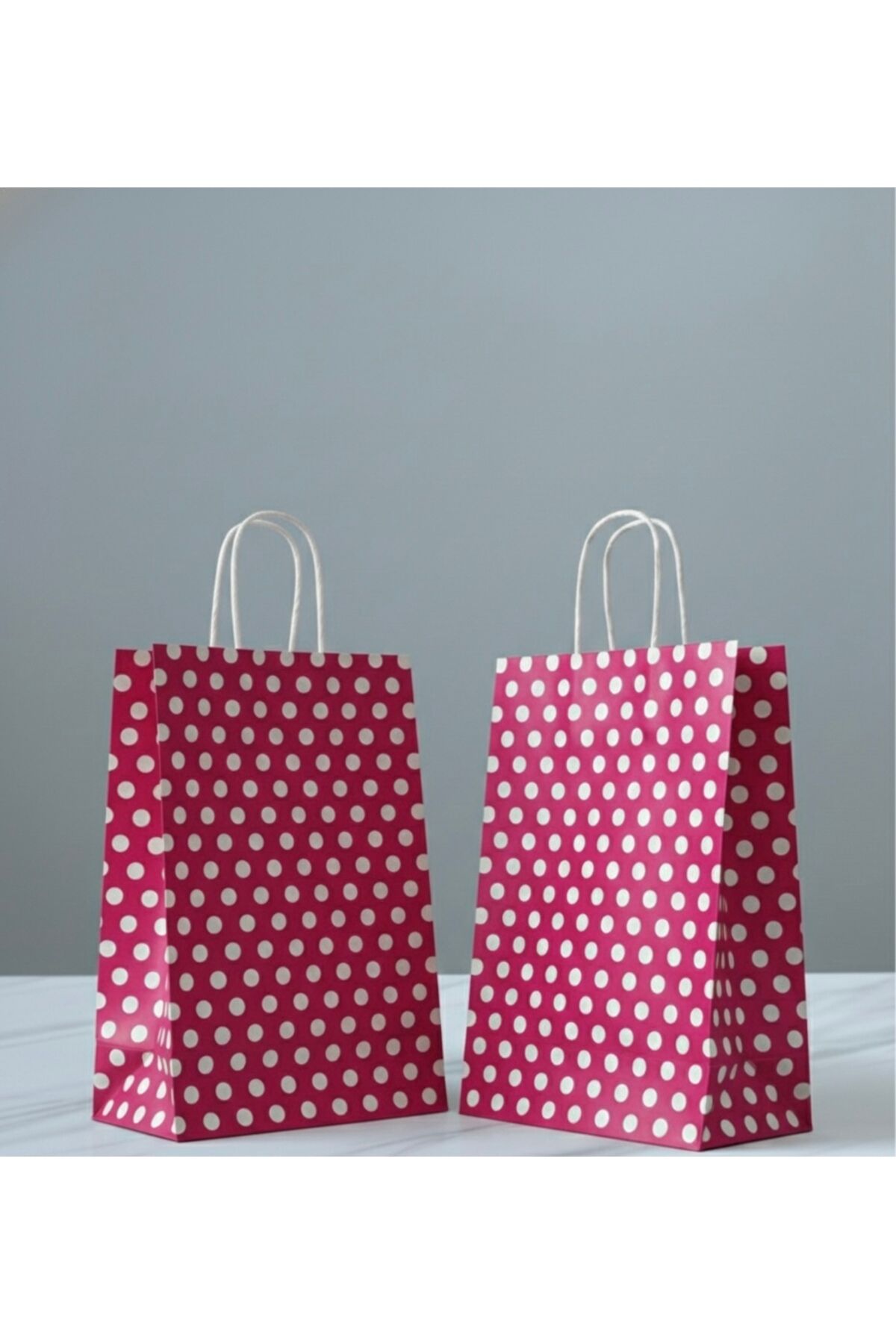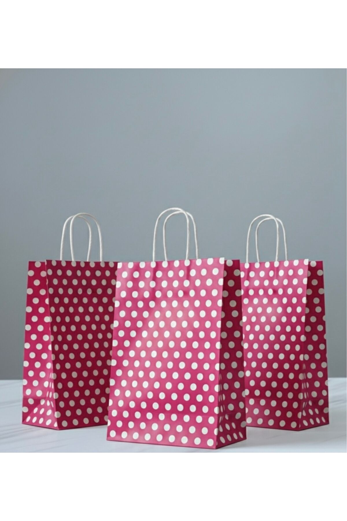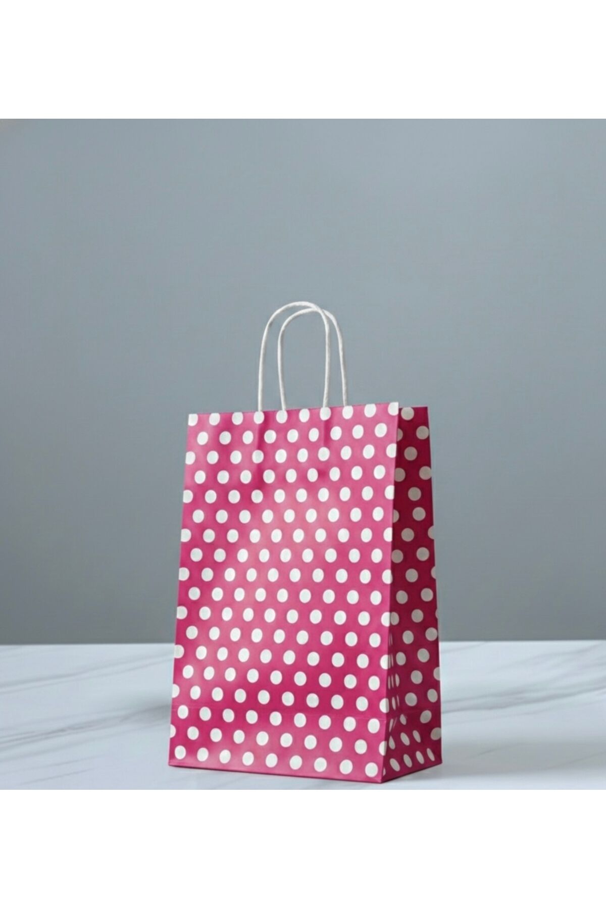 Pembe Renk Beyaz Benekli Kraft Kağıt Çanta