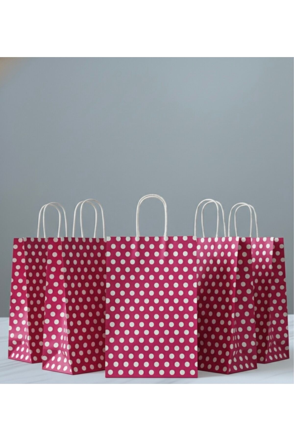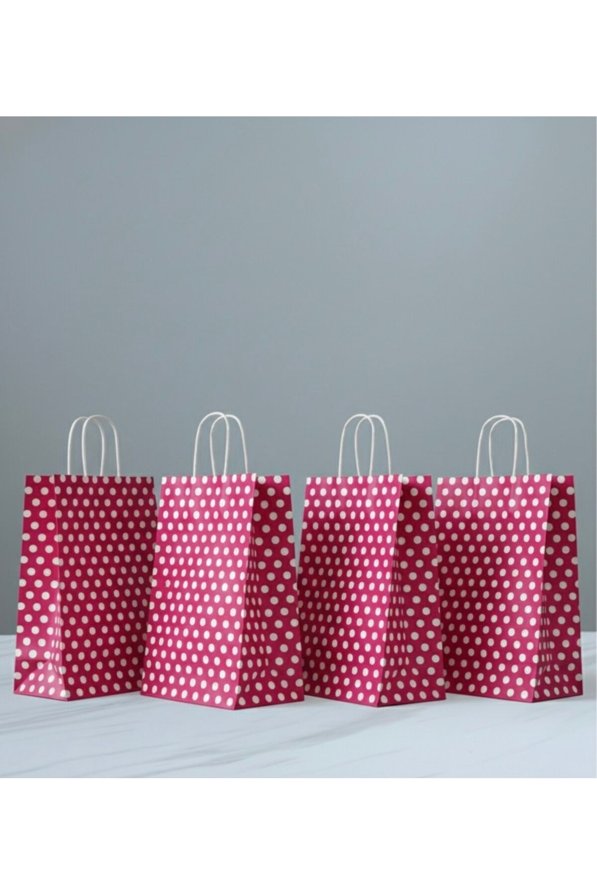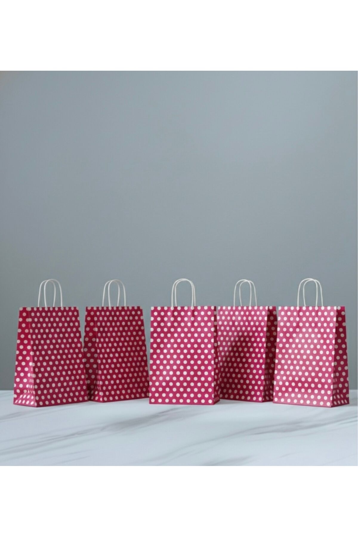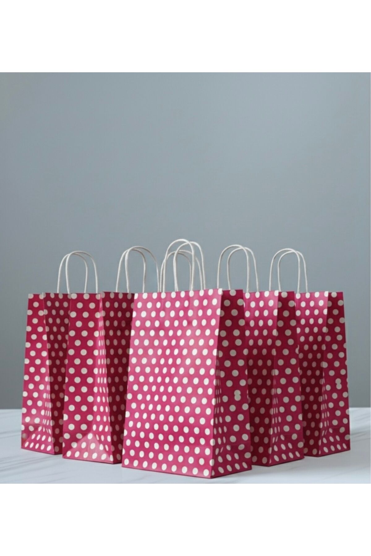 Pembe Renk Beyaz Benekli Kraft Kağıt Çanta