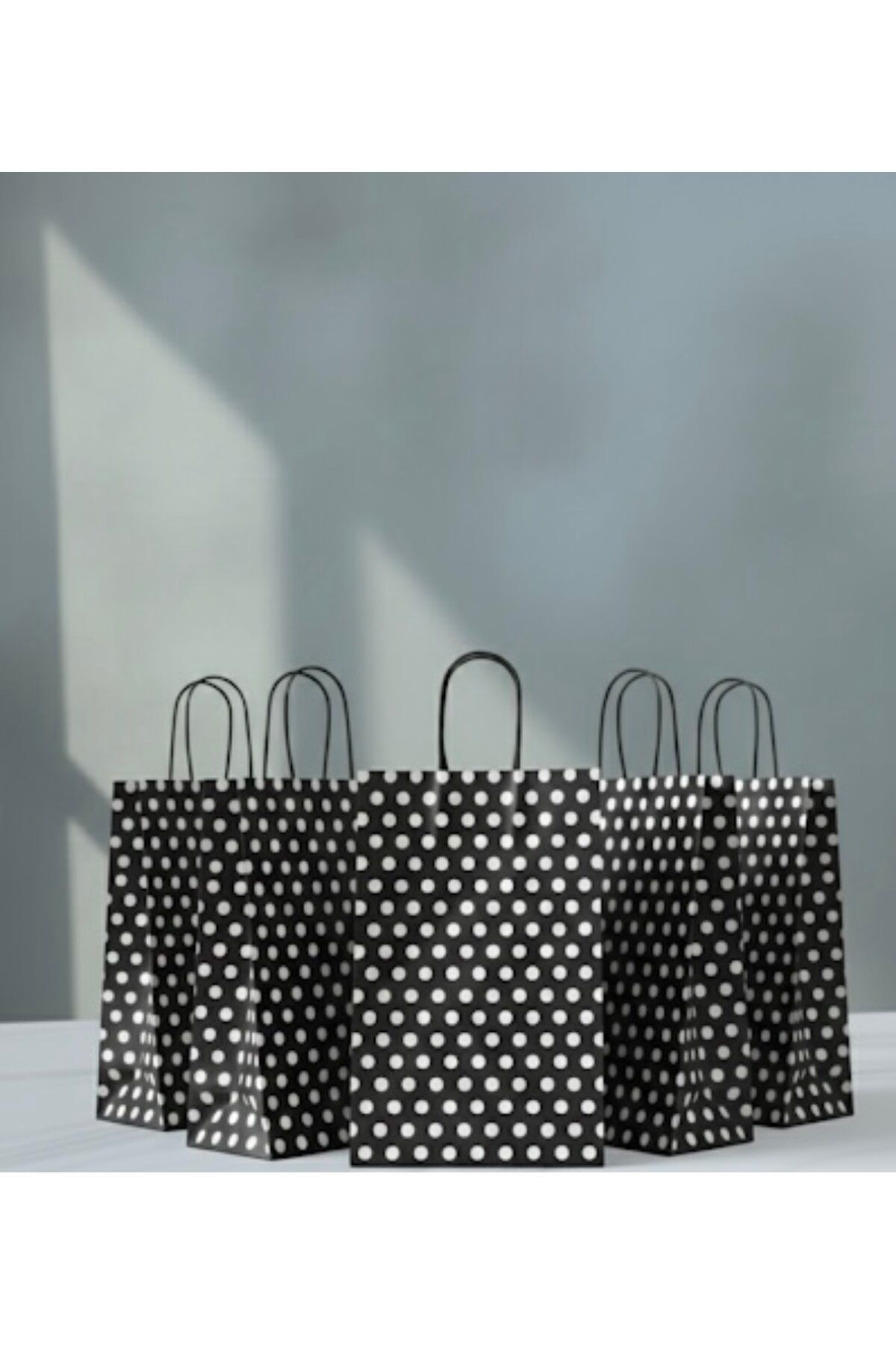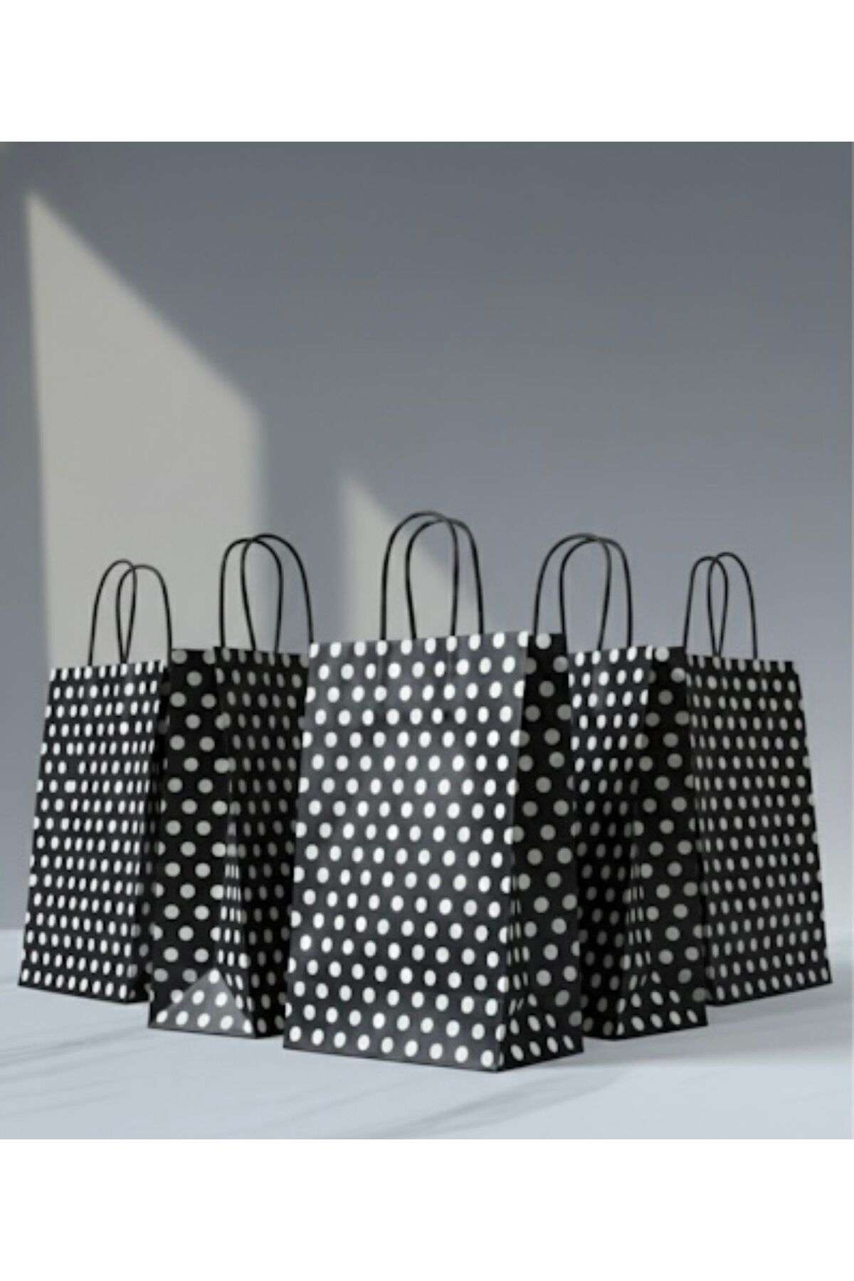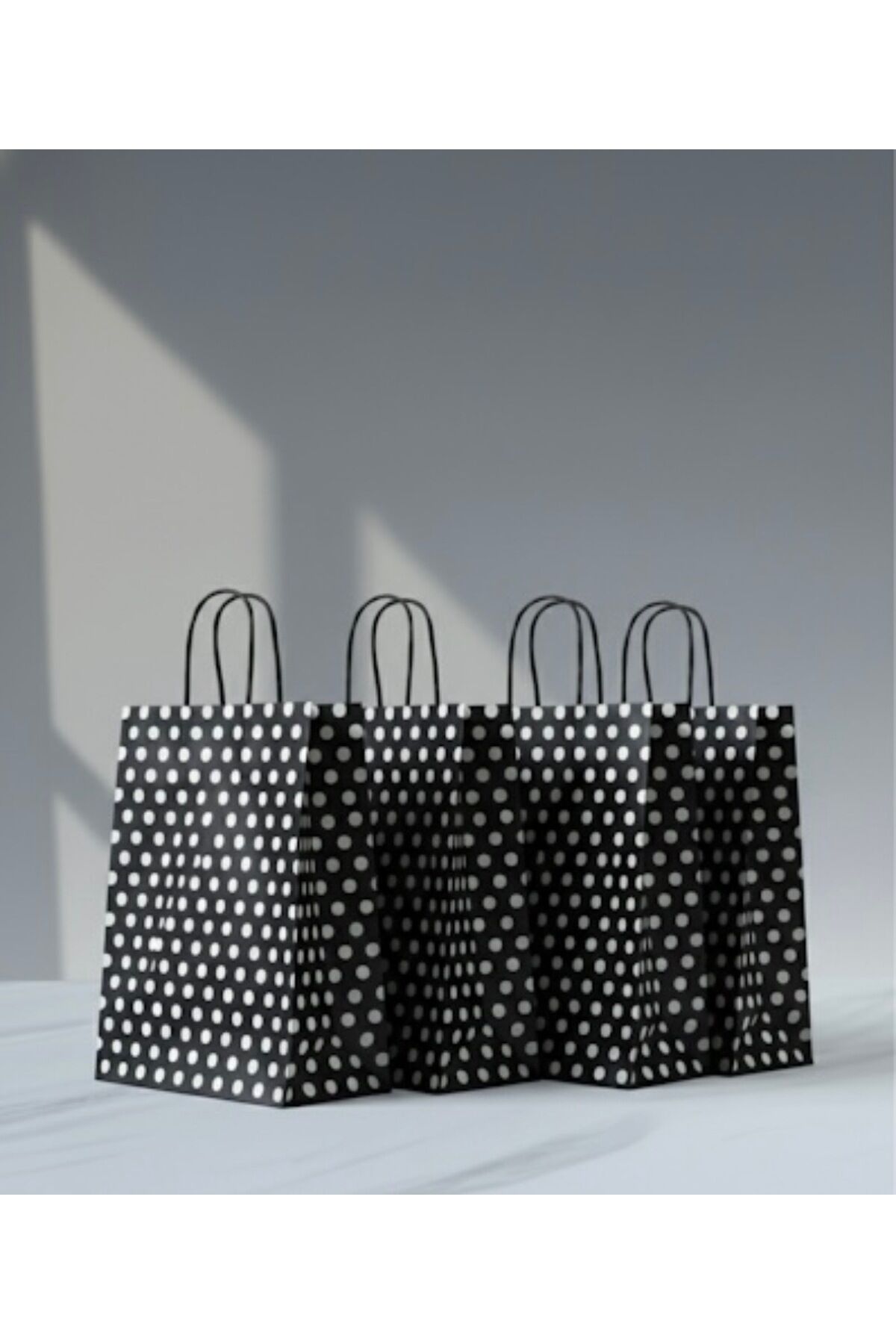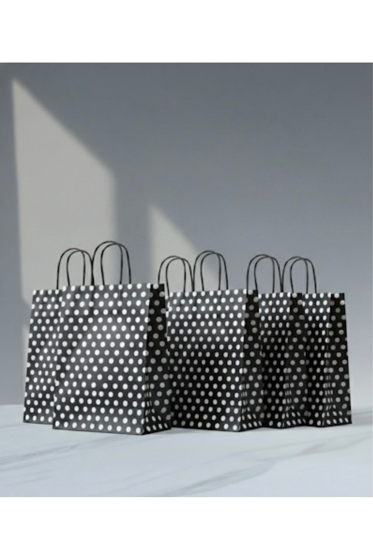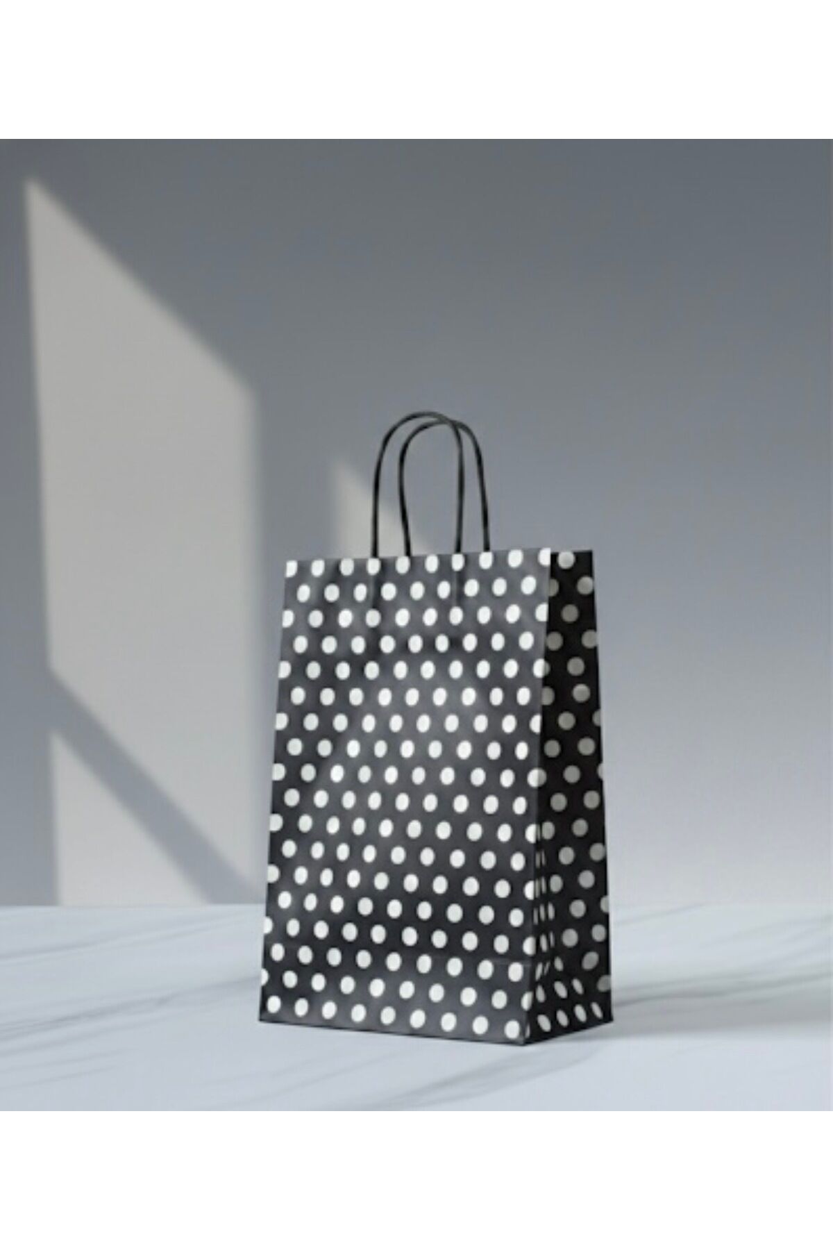 Siyah Renk Beyaz Benekli Kraft Kağıt Çanta