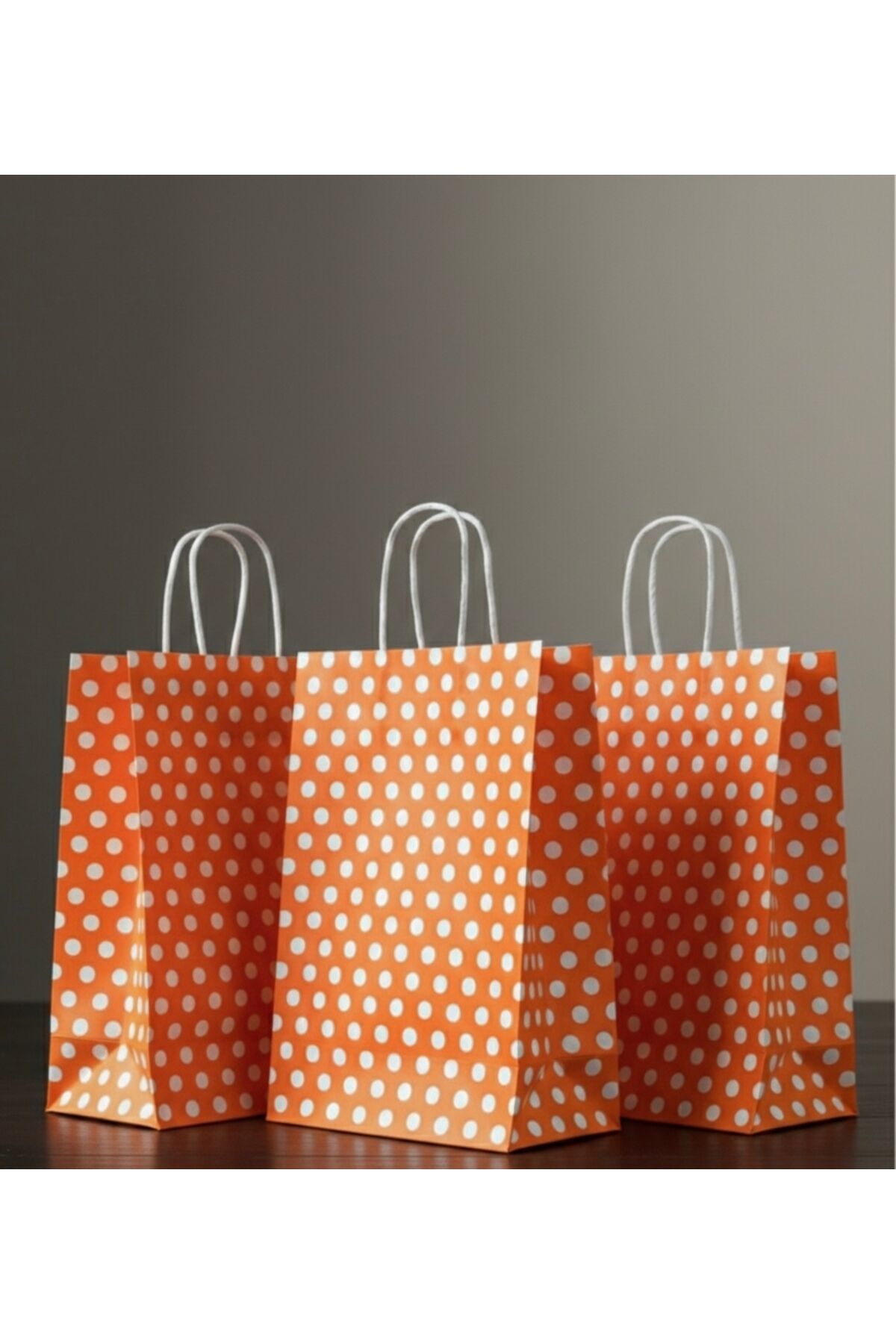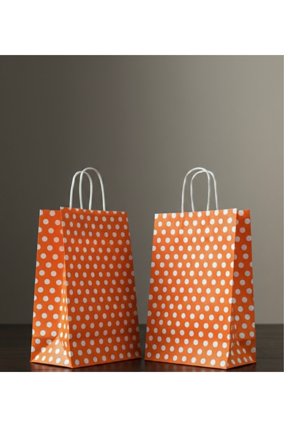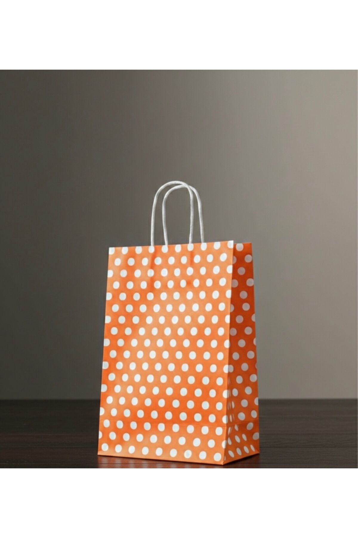 Turuncu Renk Beyaz Benekli Kraft Kağıt Çanta