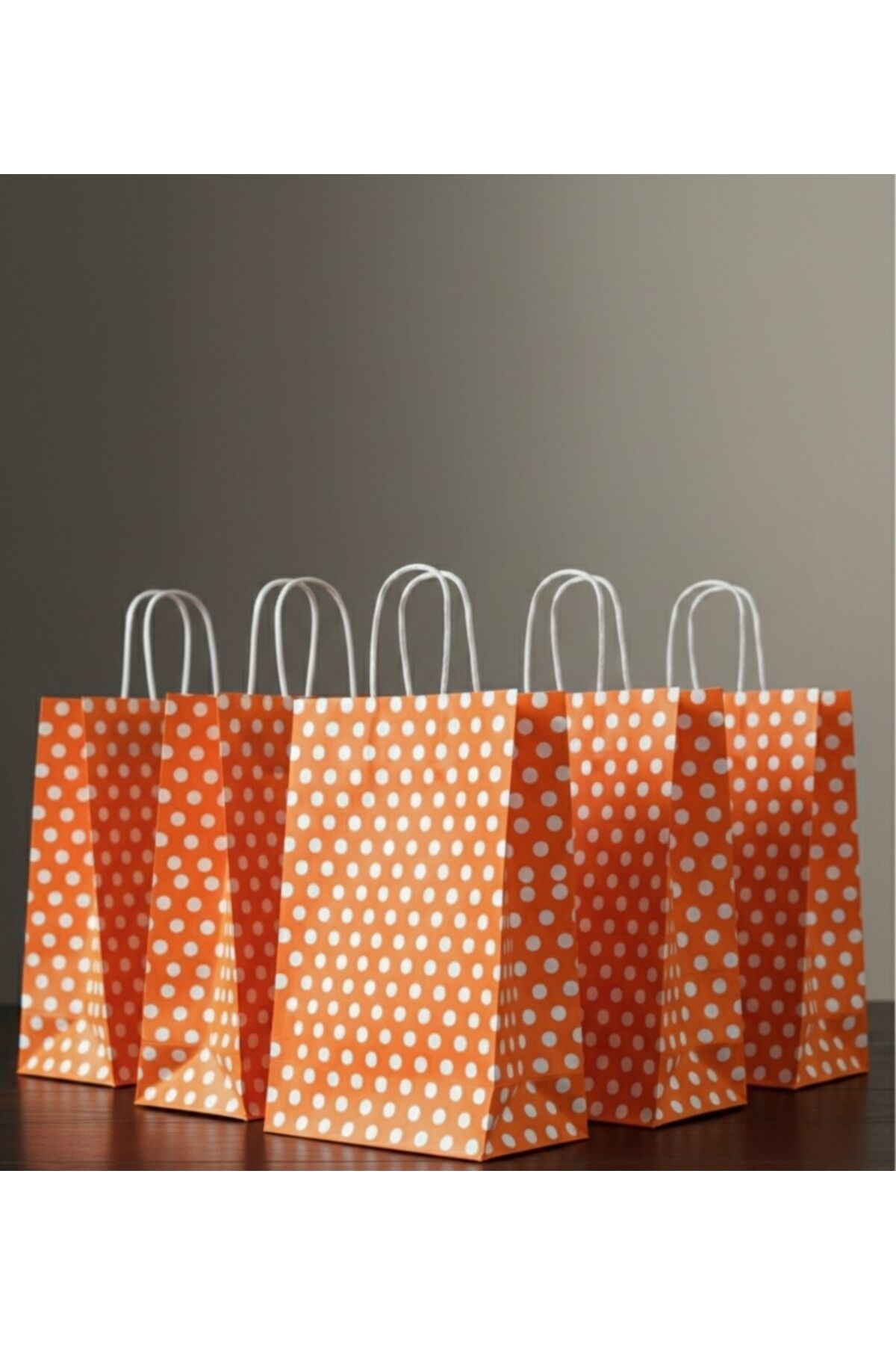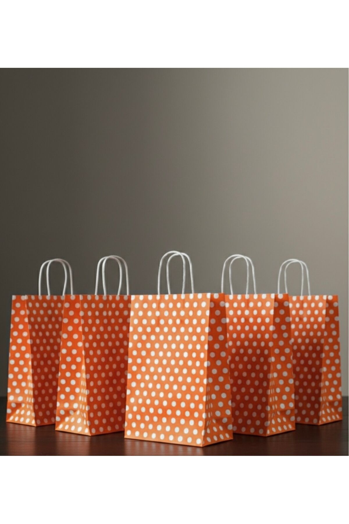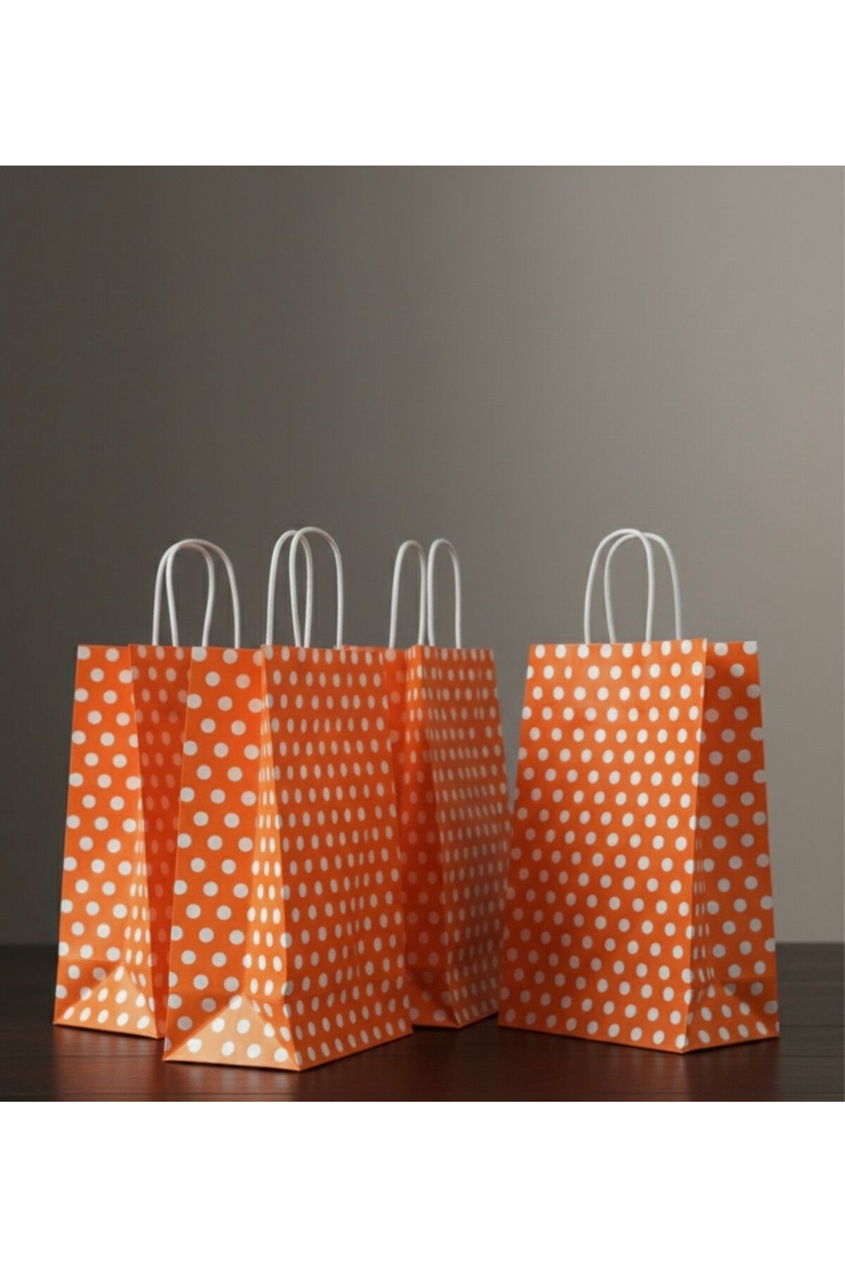 Turuncu Renk Beyaz Benekli Kraft Kağıt Çanta