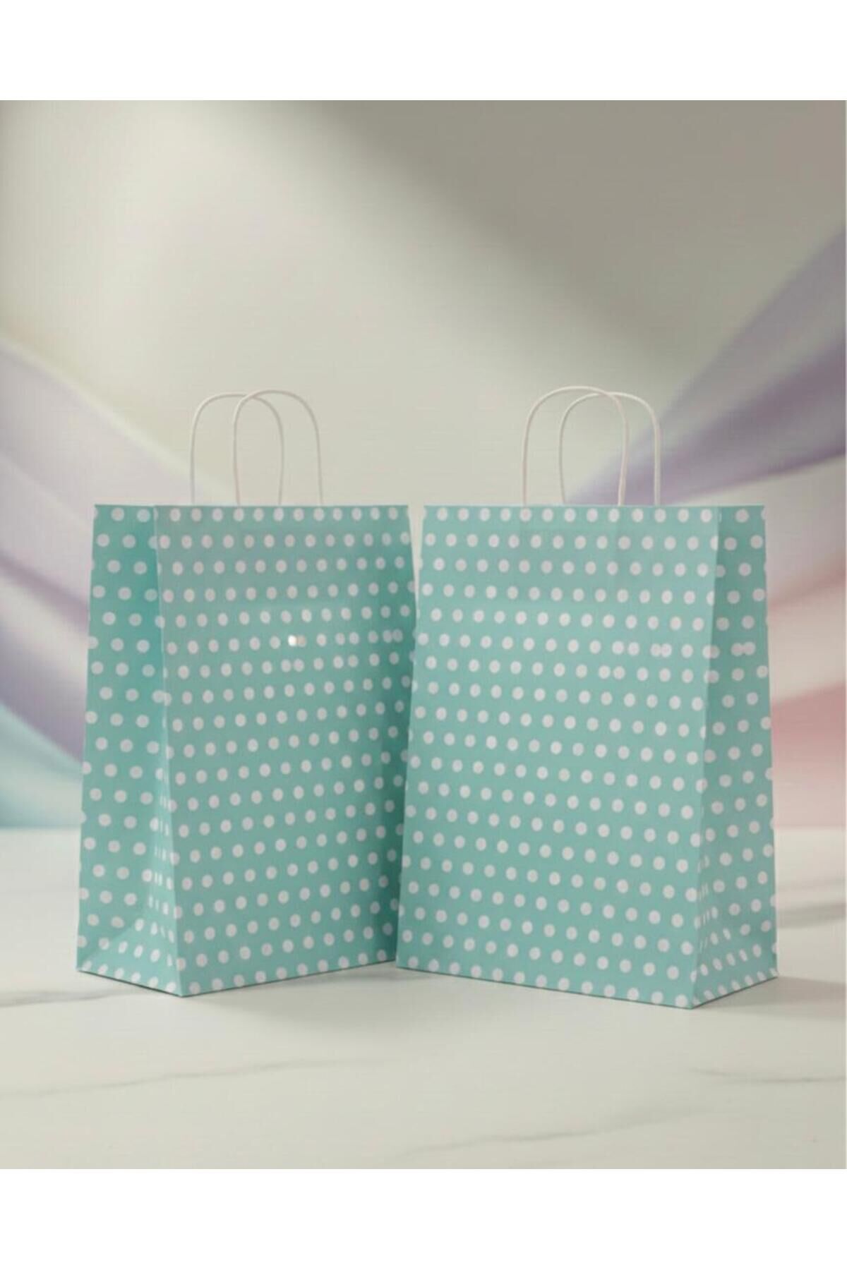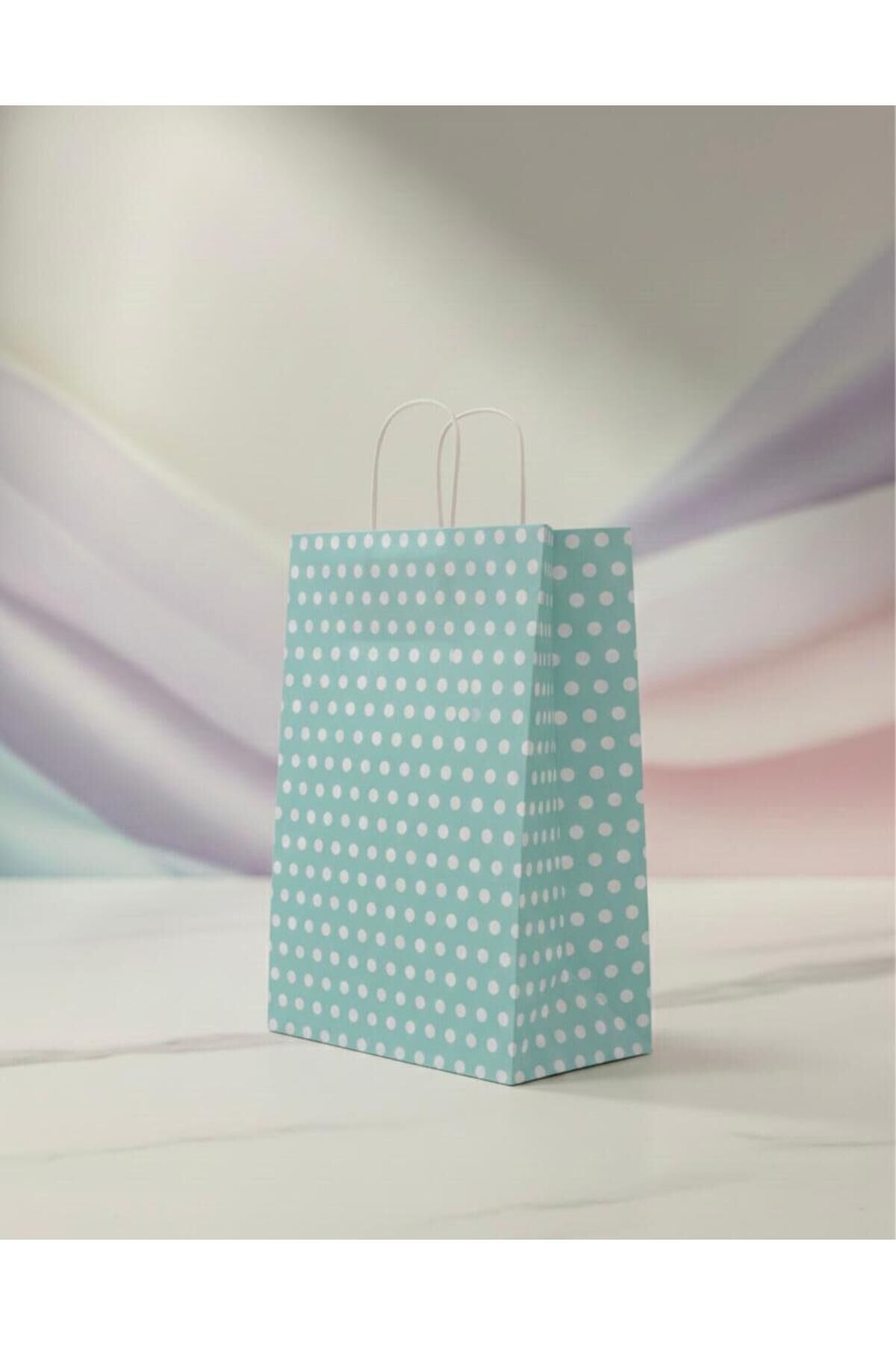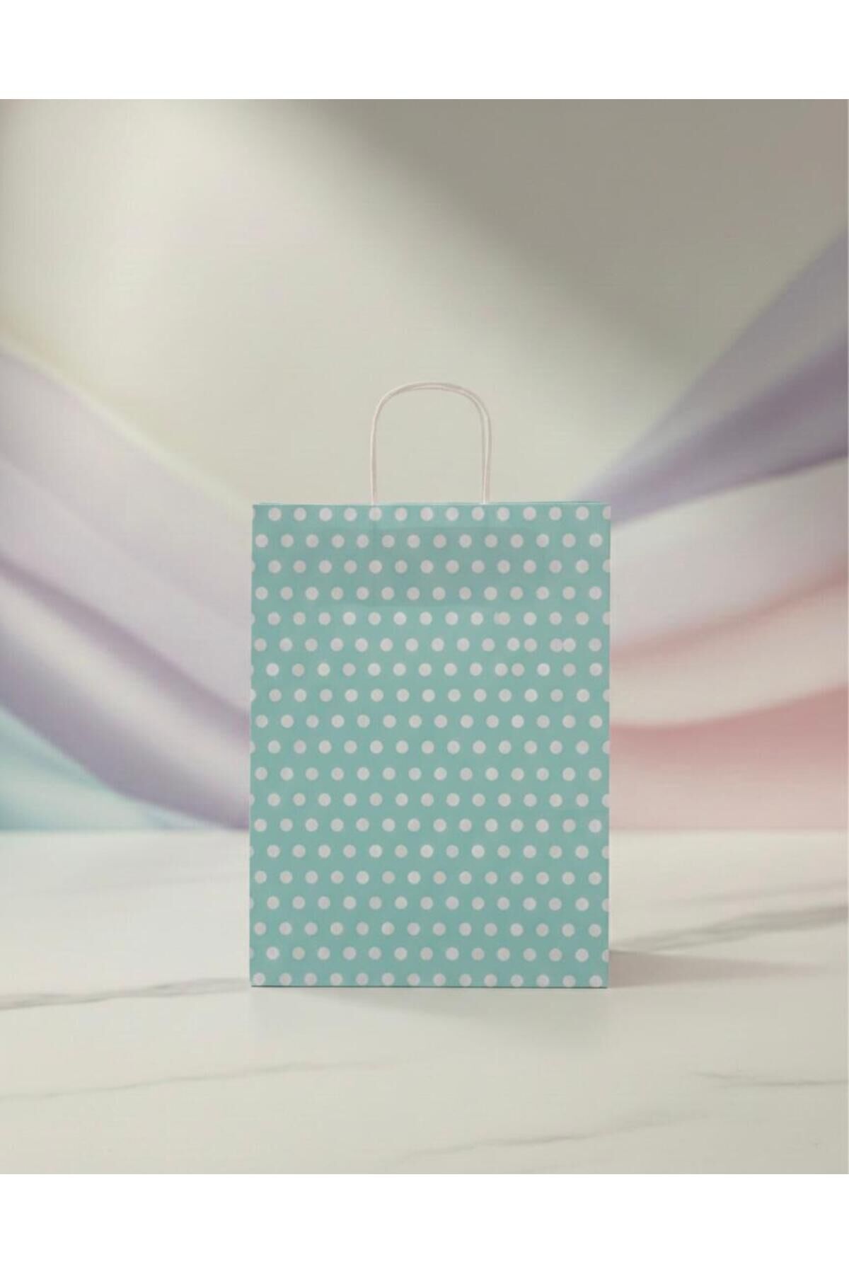 Su Yeşili Beyaz Benekli Kraft Kağıt Çanta