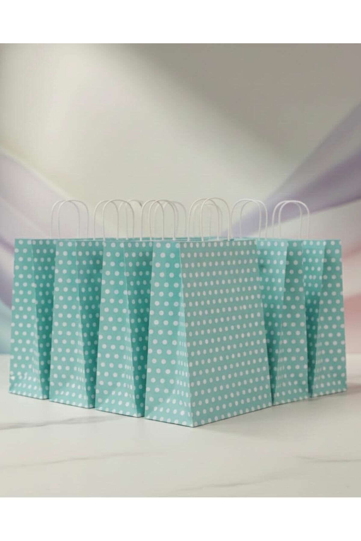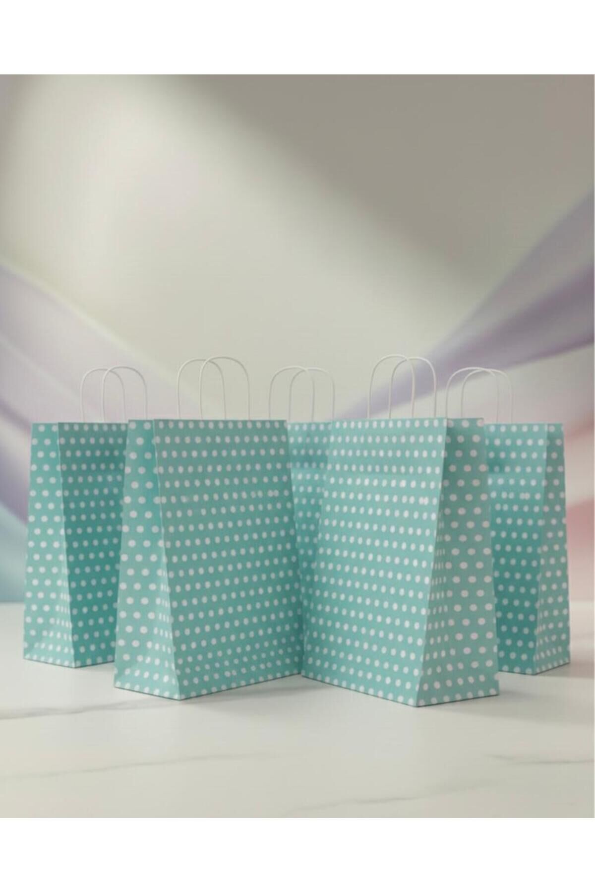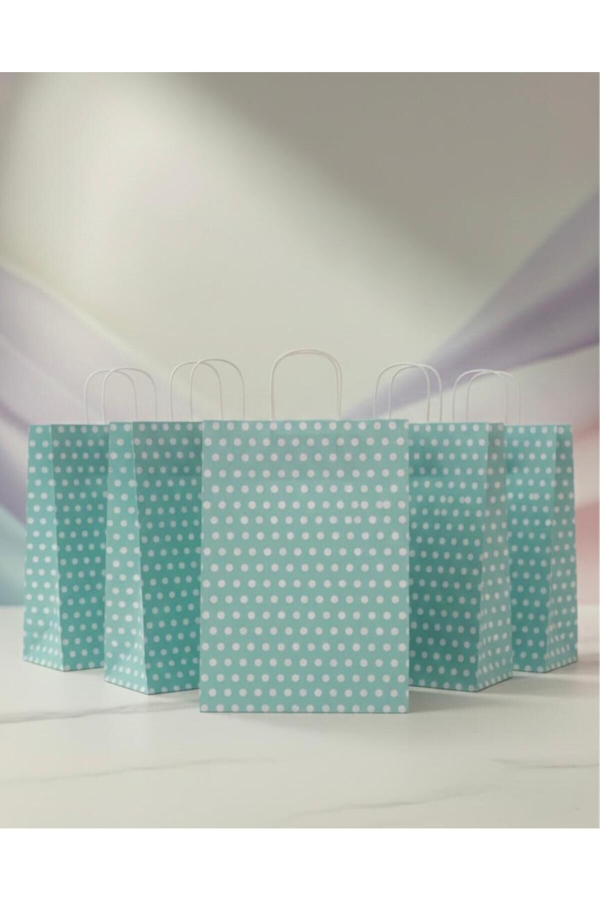 Su Yeşili Beyaz Benekli Kraft Kağıt Çanta