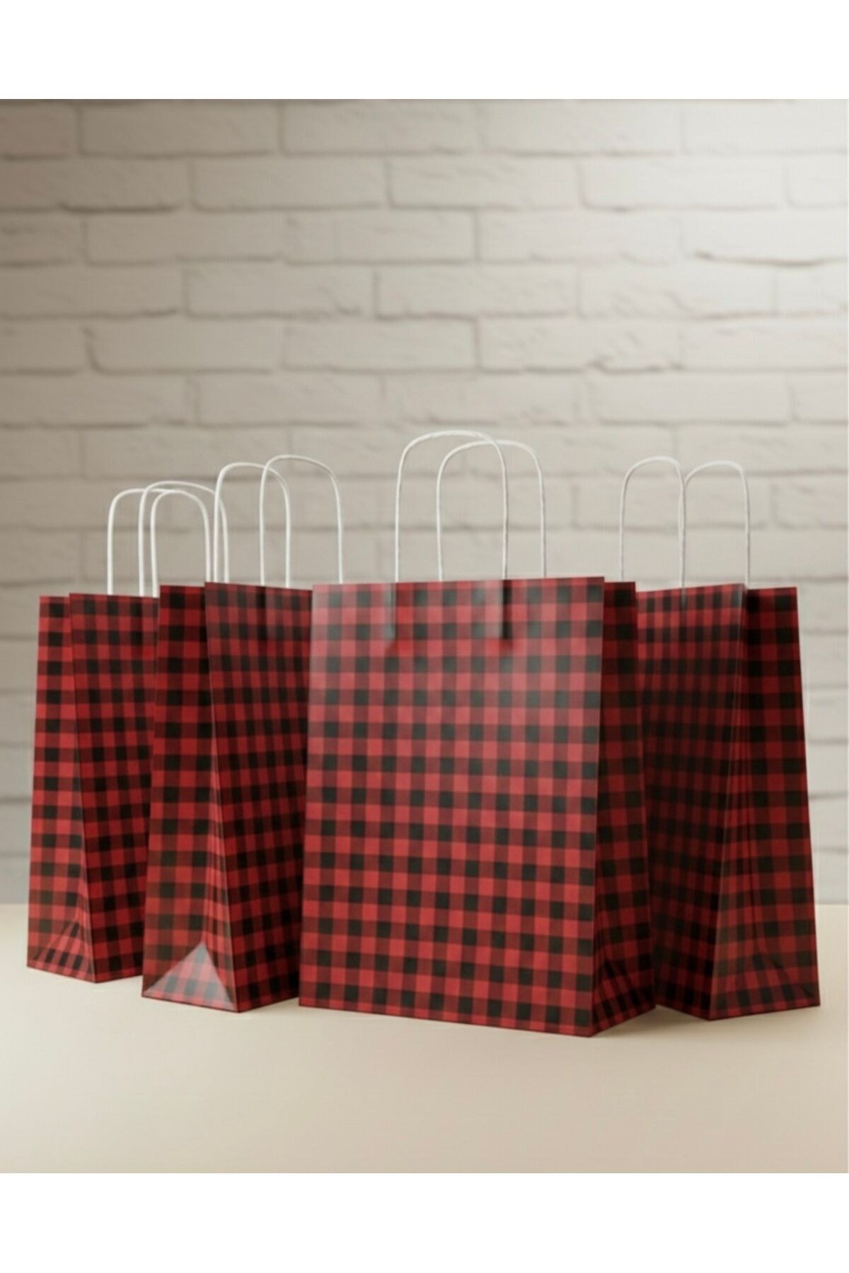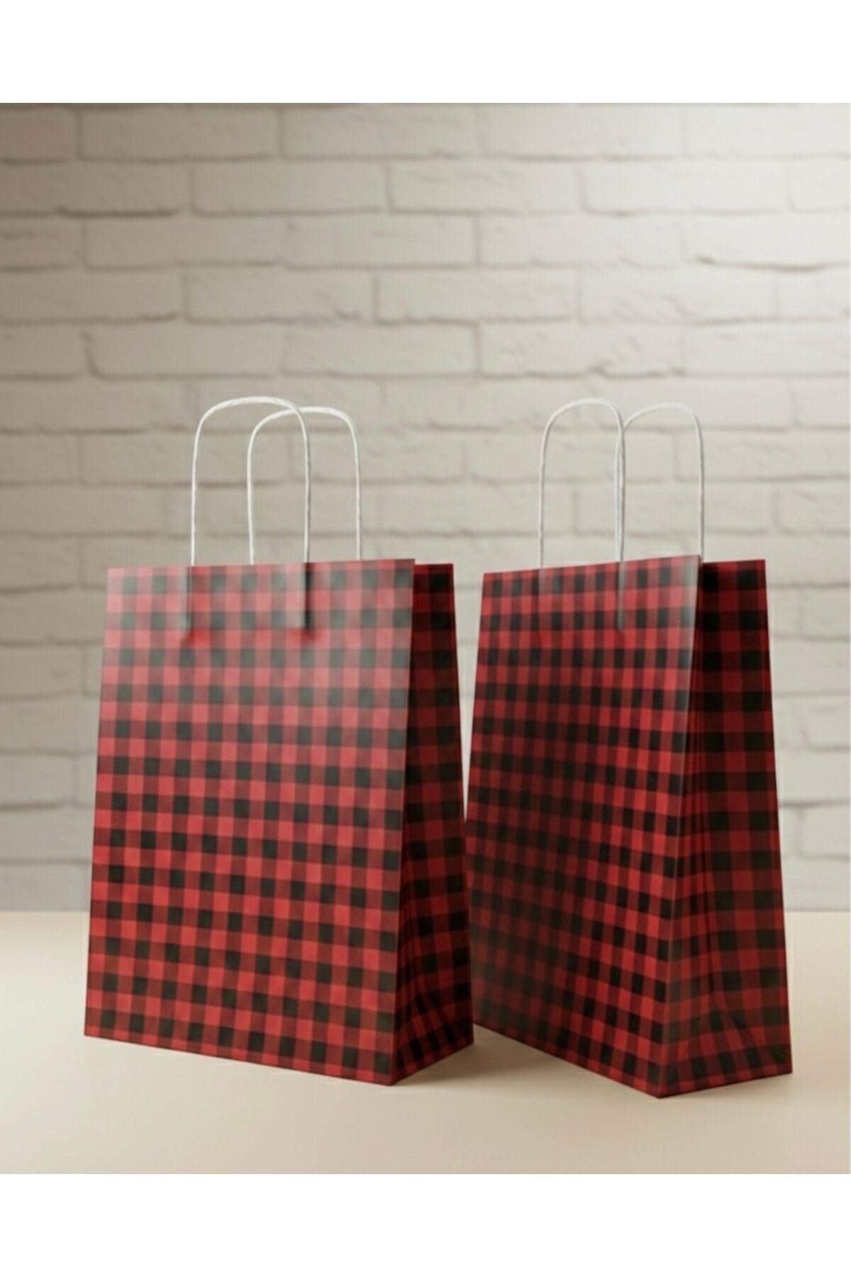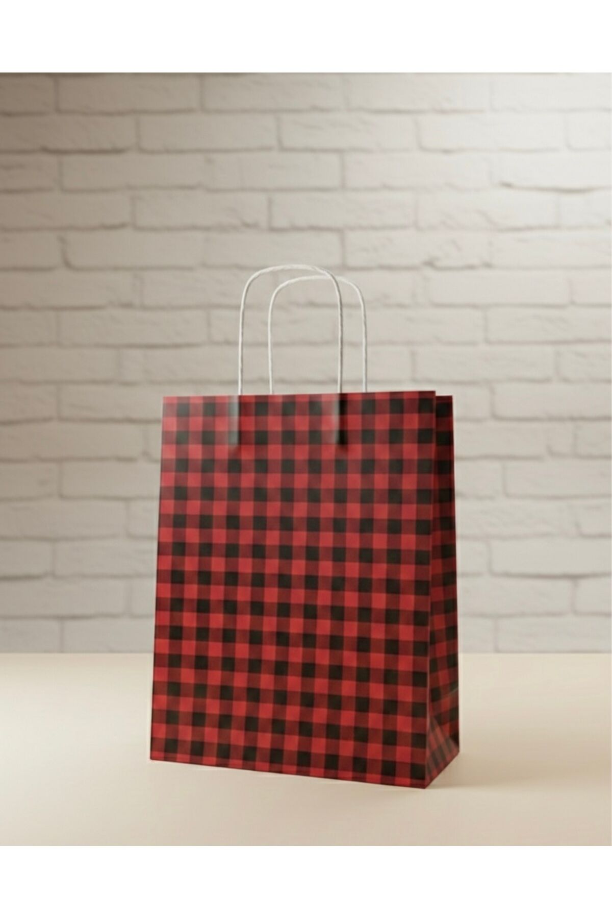 Siyah/Kırmızı Ekose Kraft Kağıt Çanta
