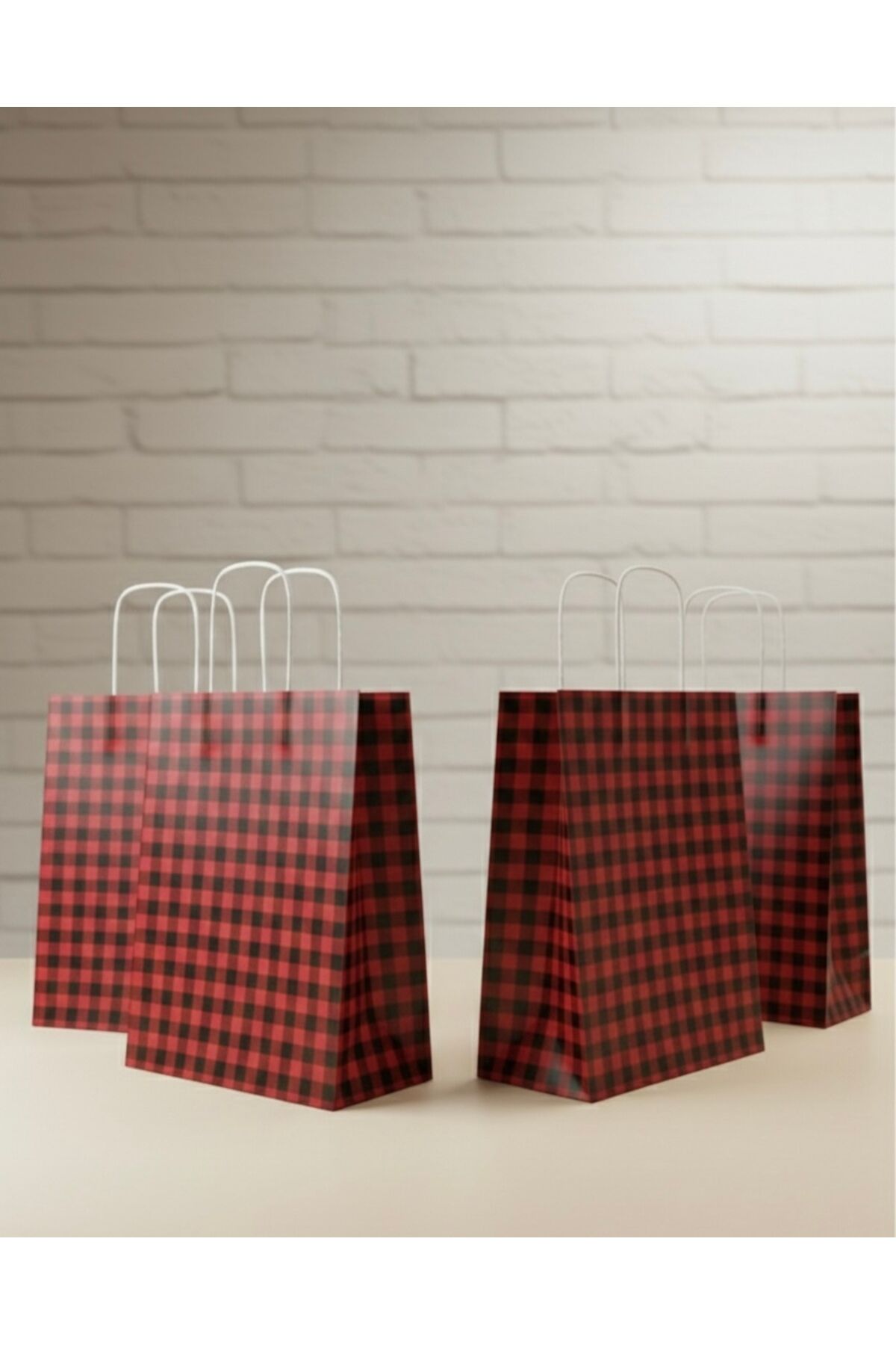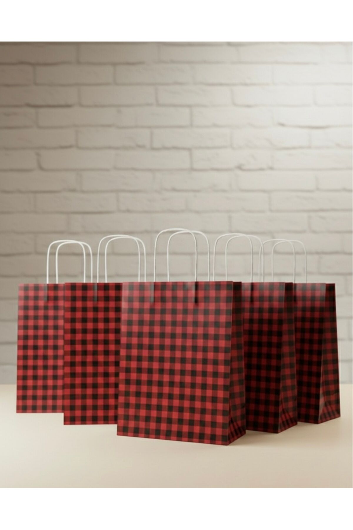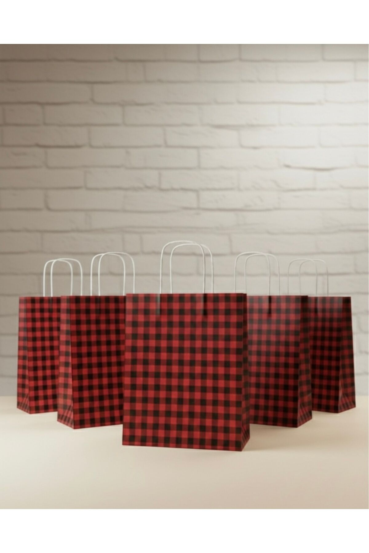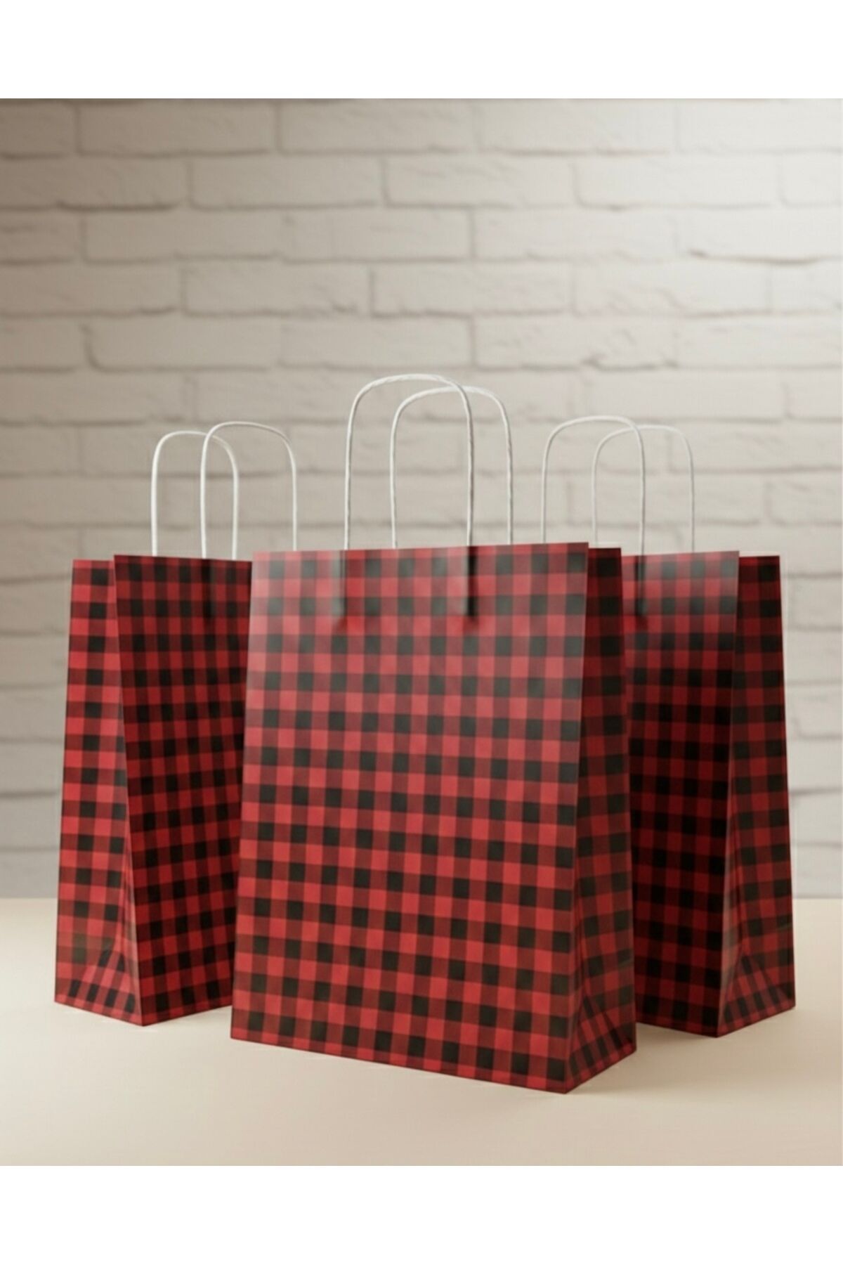 Siyah/Kırmızı Ekose Kraft Kağıt Çanta